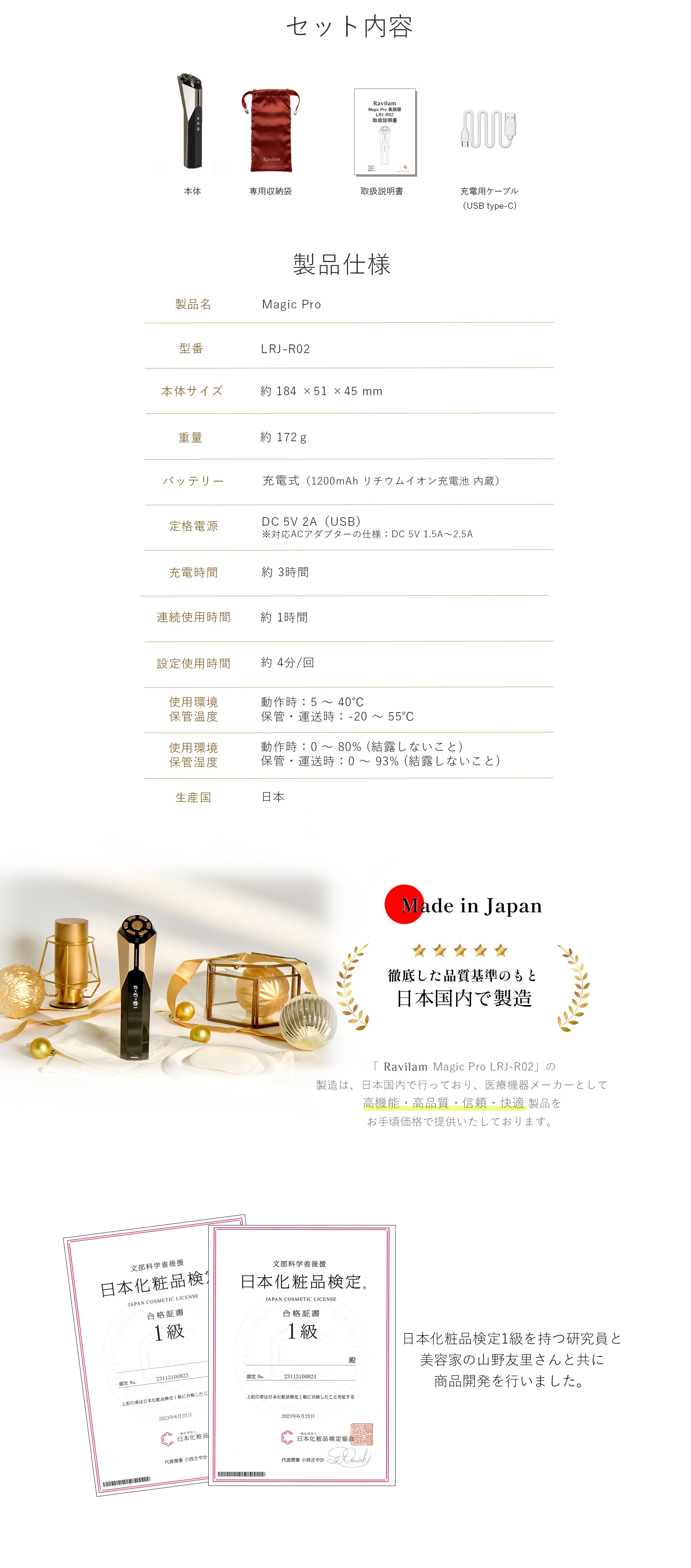 ※ 美容オイルなど、油分を含む化粧品は電気を通さないのでご使用をお控えください。